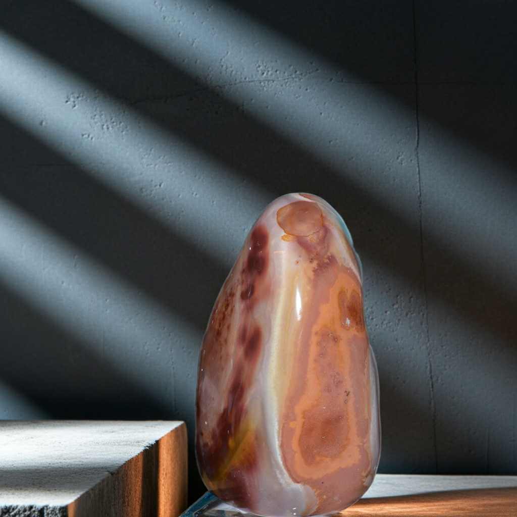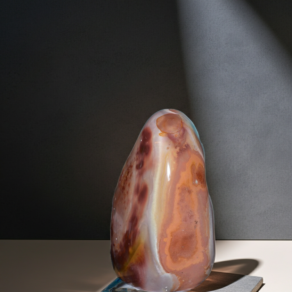 Polychroom Jaspis (ook wel bekend als Desert Jasper) is een opvallende halfedelsteen die bekendstaat zijn rijke kleuren en golvende aardepatronen. Polychroom jaspis heeft een veelkleurig uiterlijk. De naam "polychroom" betekent letterlijk veel kleuren. In 1 steen kunnen verschillende tonen voorkomen zoals rood en terracotta, bruin, creme en beige, grijs, soms blauwachtige of groene nuances. De kleuren lopen vaak in zachte lagen, vlekken of golvende patronen door elkaar, waardoor de steen een landschapsachtig of schilderachtig effect krijgt.