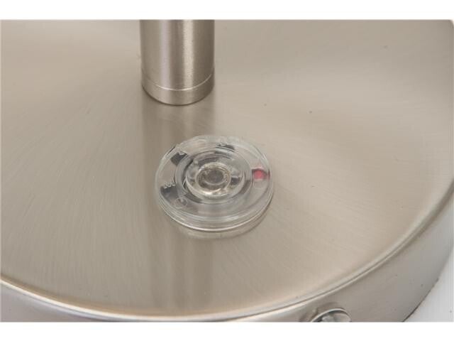 1x Tafellamp 8601 staal uit de serie safeguard staal, inclusief 11Watt spaarlamp. Diameter ca. 13cm en hoogte ca. 37cm. Gewicht 3,2 kg. Tafellampje met strak design en ook vele functies. Zo beschikt deze lamp over een timer. De timer is op meerdere manieren instelbaar en bevat een anti inbraak stand. De lamp schakelt willekeurig in en uit, waardoor inbrekers zullen denken dat u thuis bent. Daarnaast heeft dit lampje een daglichtsensor, waardoor het lampje overdag niet onnodig zal branden. Het netsnoer, van 2 meter lang, beschikt over een aan-/uit-schakelaar. Het armatuur is gemaakt van geborsteld staal en de lampenkap van wit mat glas. Deze combinatie zorgt voor een moderne uitstraling. De voetplaat van deze lamp is rond